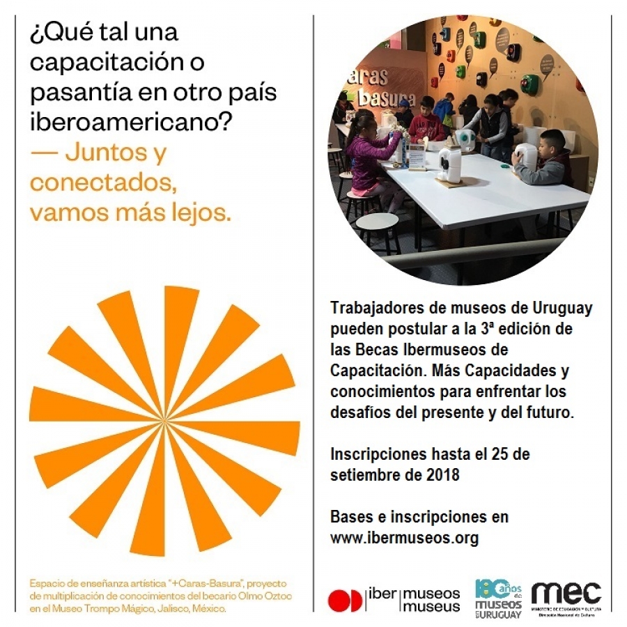 La convocatoria de Becas Ibermuseos de Capacitación 2018 permanecerá abierta hasta el 25 de setiembre. En su tercera edición, este proyecto del Programa Ibermuseos busca fortalecer las competencias y conocimientos de los trabajadores de museos en Iberoamérica por medio de capacitación teórica y práctica.