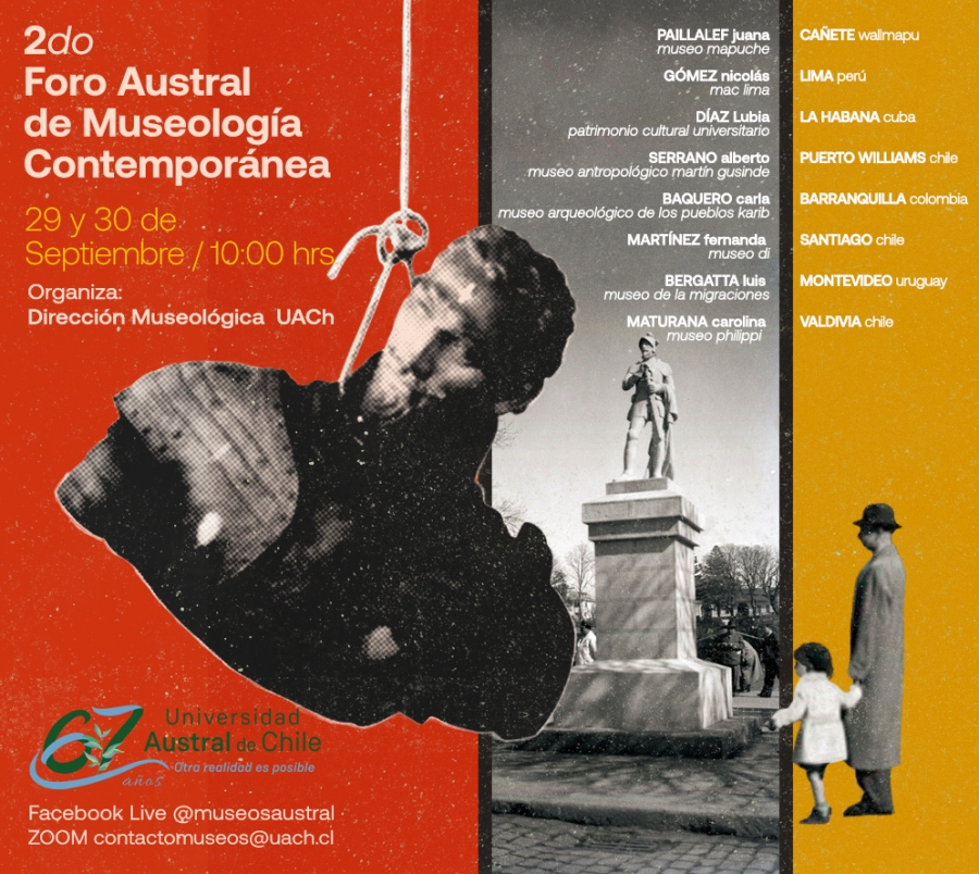 La Universidad Austral de Chile organiza e invita al segundo Foro Austral de Museología Contemporánea. El evento se llevará a cabo el 29 y 30 de setiembre desde las 10 horas y será transmitido por la plataforma Zoom y Facebook Live de Museosaustral. El Museo de las Migraciones de Uruguay estará representando a nuestro país.